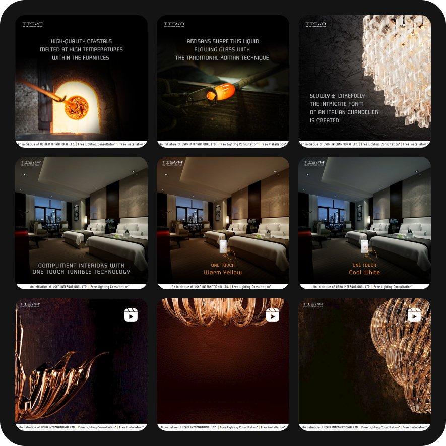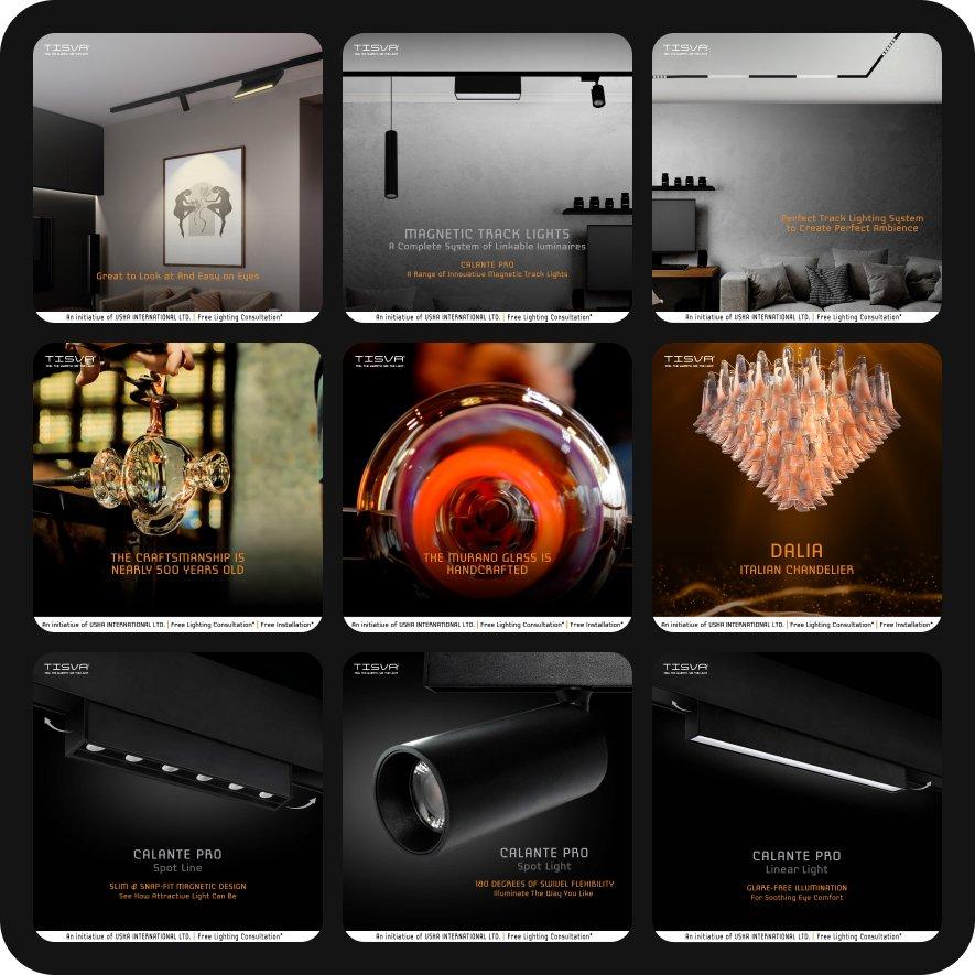 Ensured that copy, captions, and messaging highlighted the same core message, focusing on product craftsmanship, features, and unique selling points. Aligned all communication efforts towards promoting TISVA's lighting solutions and their superior quality.